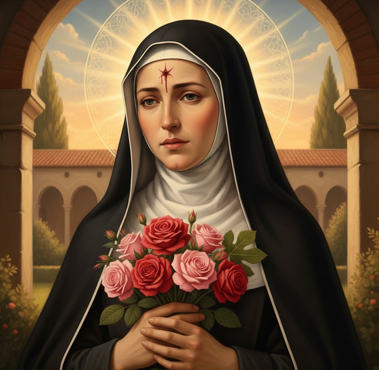 Santa Rita de Cássia, nascida Margherita Lotti em Roccaporena, Itália, no ano de 1381, é uma das santas mais amadas e veneradas da Igreja Católica. Sua vida, marcada por sofrimento, amor, perdão e uma fé inabalável, a tornou conhecida como a "Santa das Causas Impossíveis" e a padroeira das mães, das viúvas, das feridas e dos casos desesperados. Sua história é um farol de esperança que continua a iluminar milhões de corações ao redor do mundo.